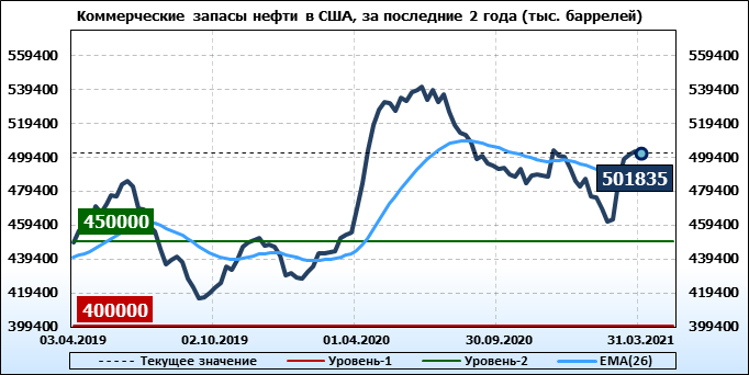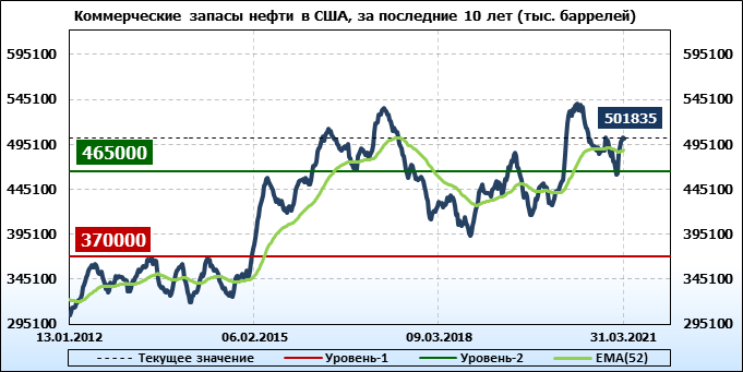 EIA. Коммерческие запасы нефти в США на 31 марта 2021
