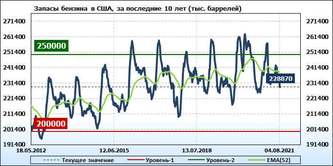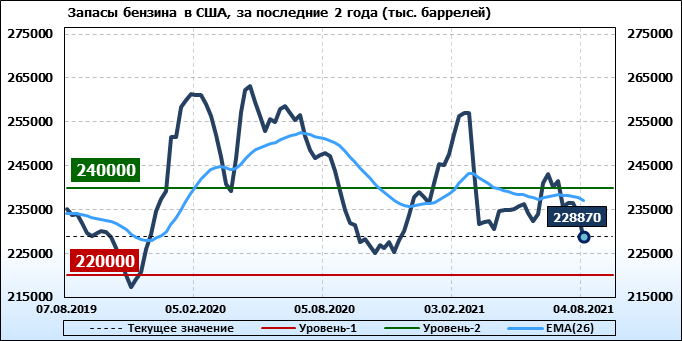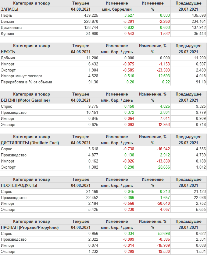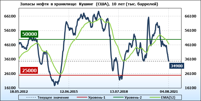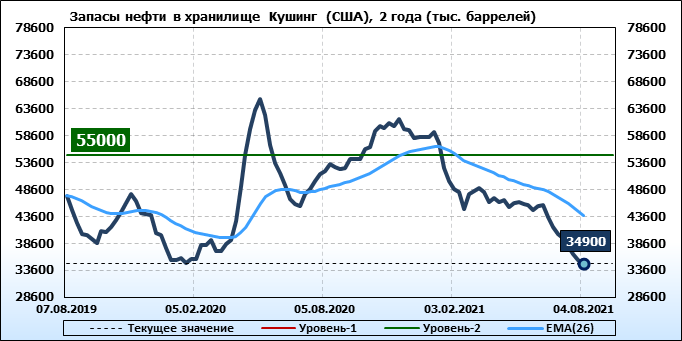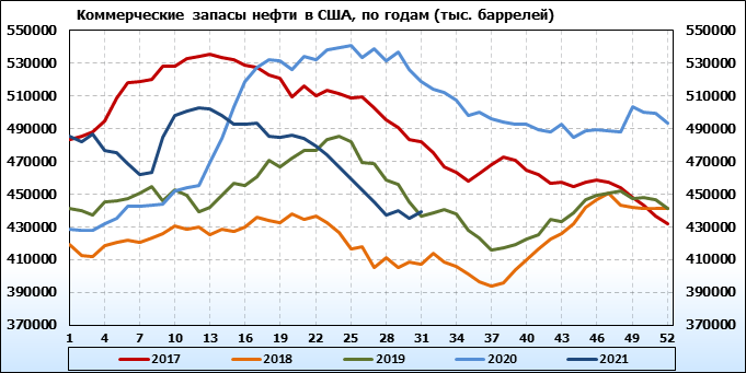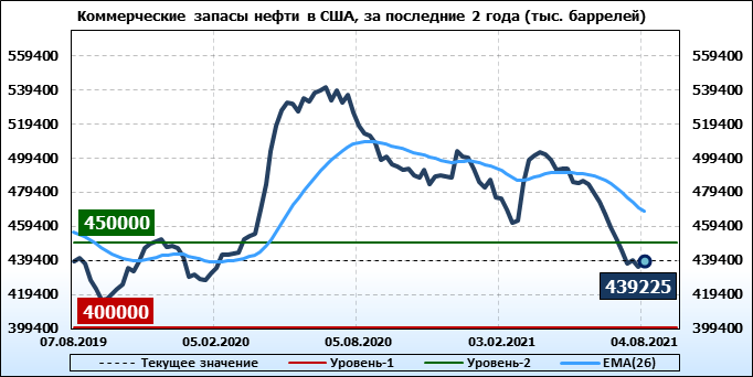 EIA. Коммерческие запасы нефти в США на 4 августа 2021