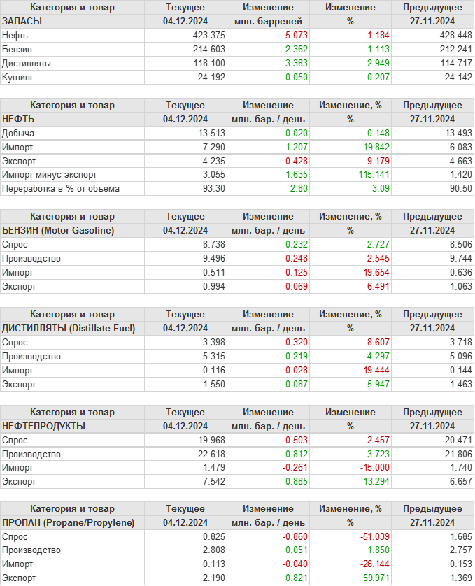 API. Изменение запасов нефти в США на 3 декабря 2024
