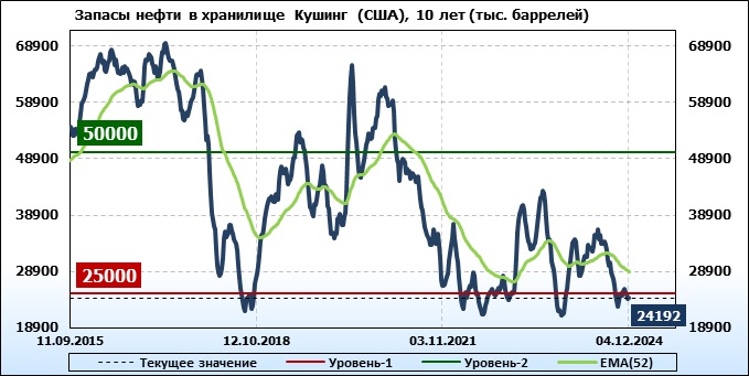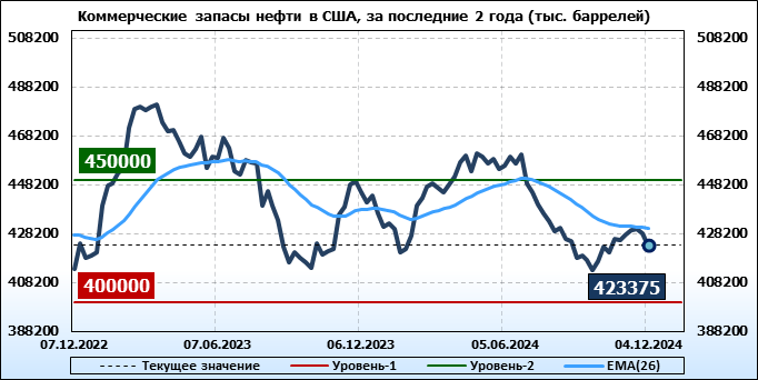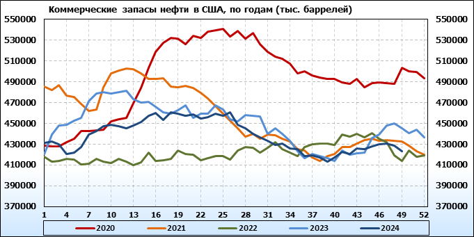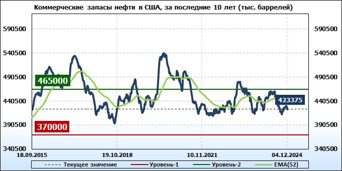 EIA. Коммерческие запасы нефти в США на 4 декабря 2024