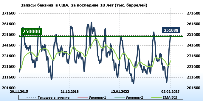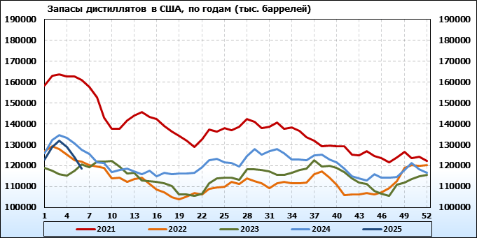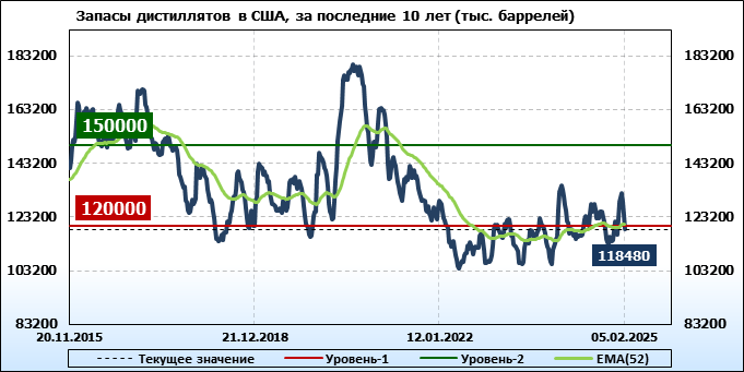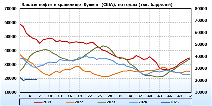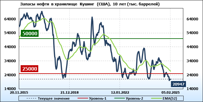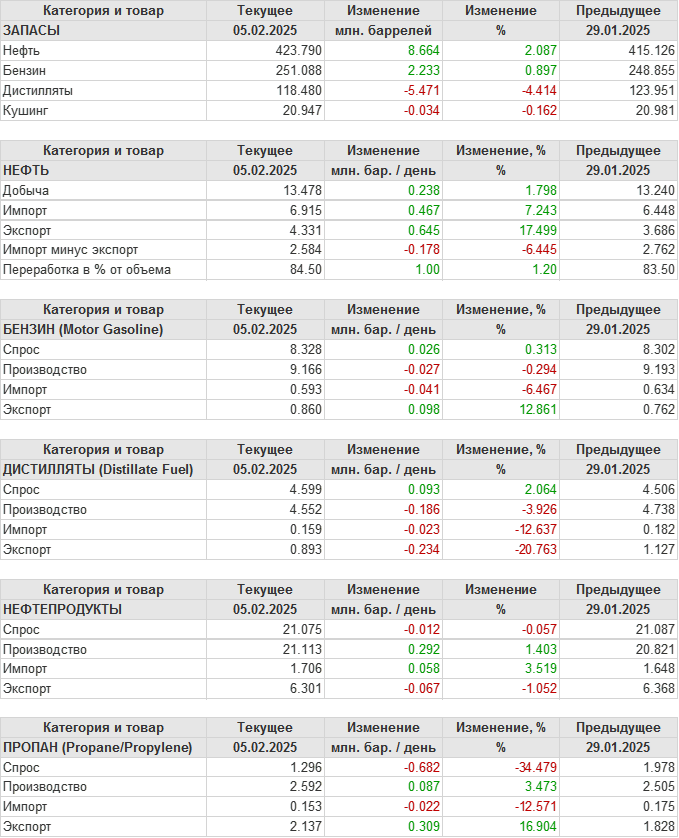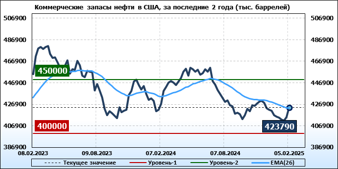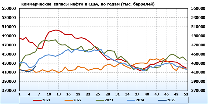 EIA. Коммерческие запасы нефти в США на 5 февраля 2025