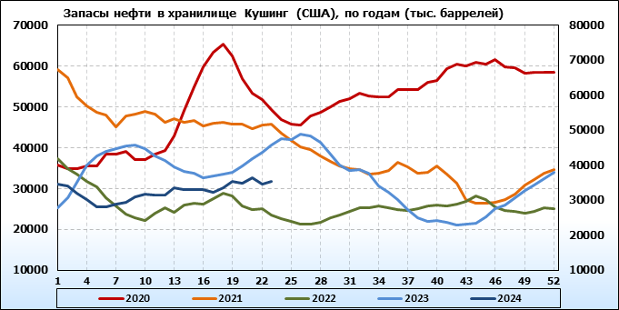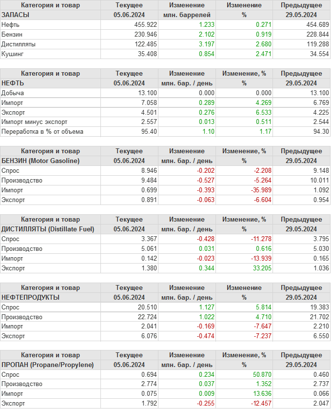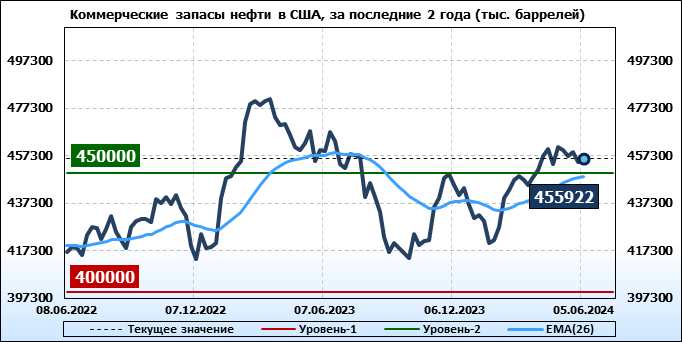 EIA. Коммерческие запасы нефти в США на 5 июня 2024