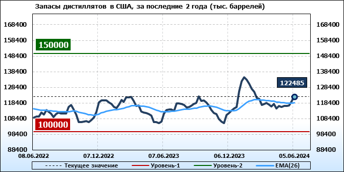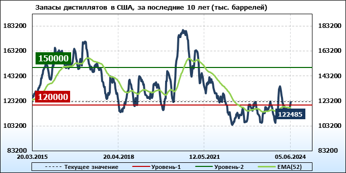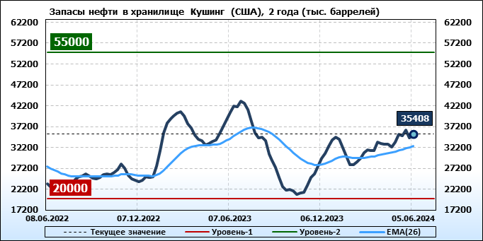 EIA. Коммерческие запасы нефти в США на 5 июня 2024