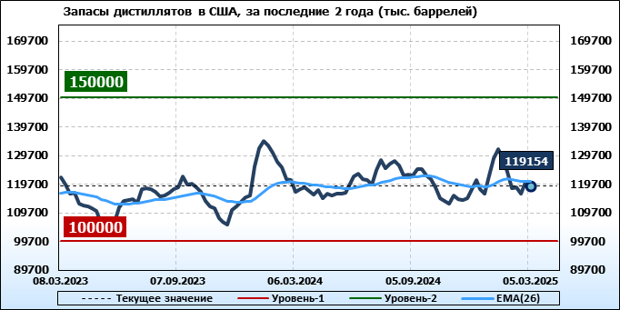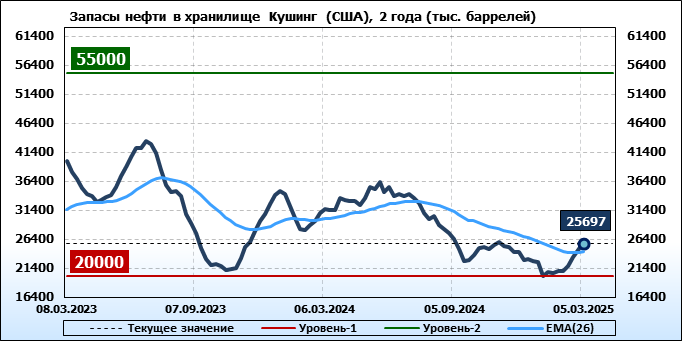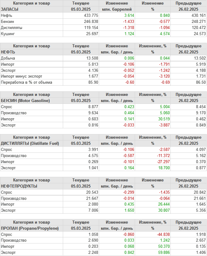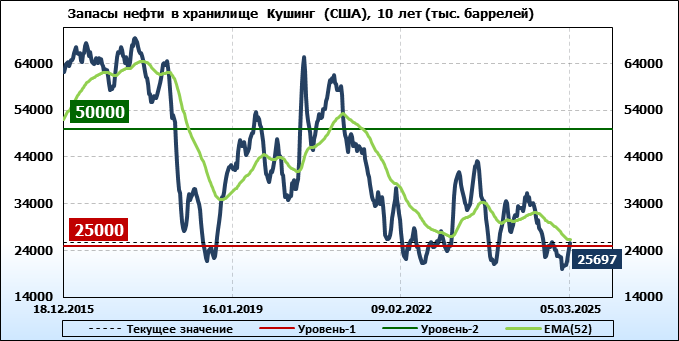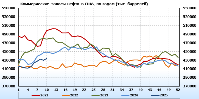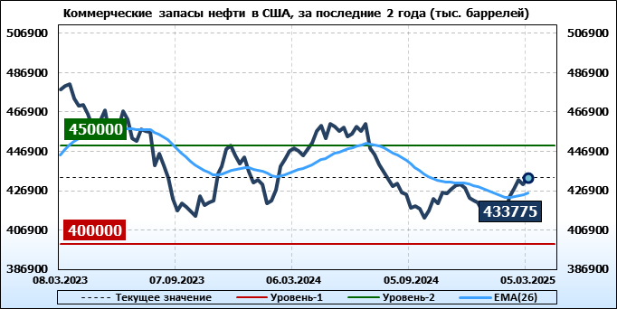 EIA. Коммерческие запасы нефти в США на 5 марта 2025