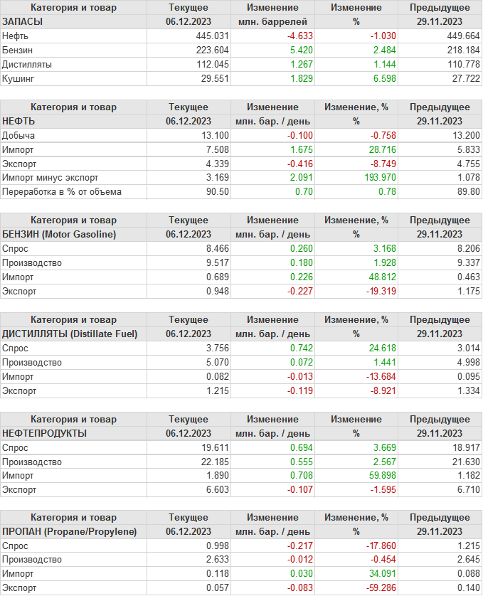 API. Изменение запасов нефти в США на 5 декабря 2023