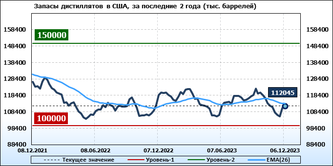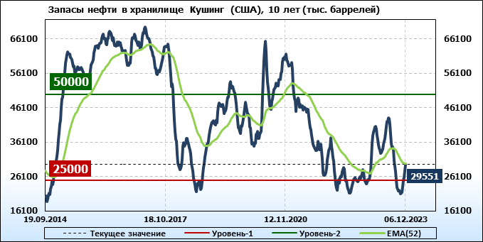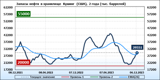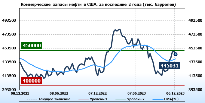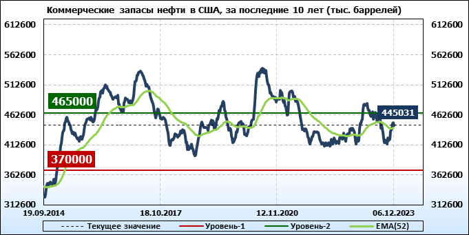 EIA. Коммерческие запасы нефти в США на 6 декабря 2023