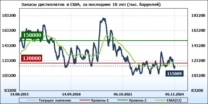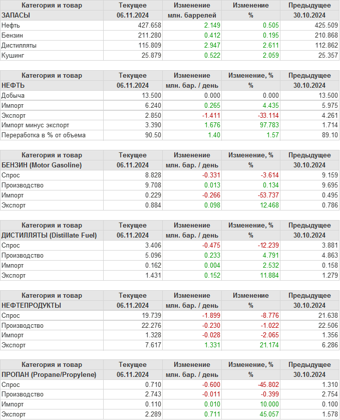 API. Изменение запасов нефти в США на 5 ноября 2024