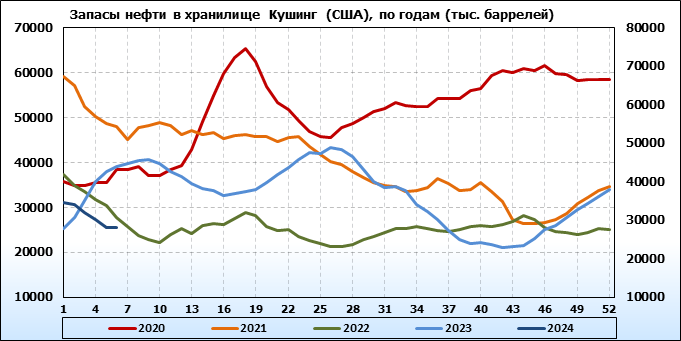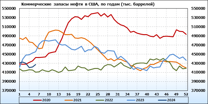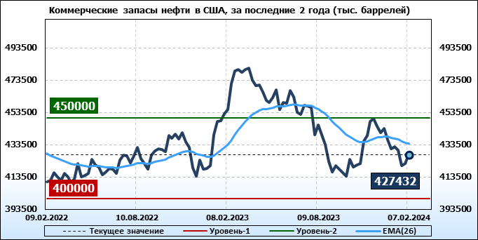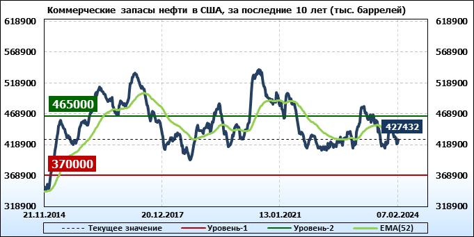 EIA. Коммерческие запасы нефти в США на 7 февраля 2024