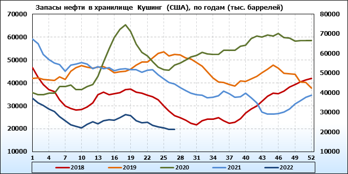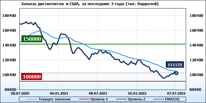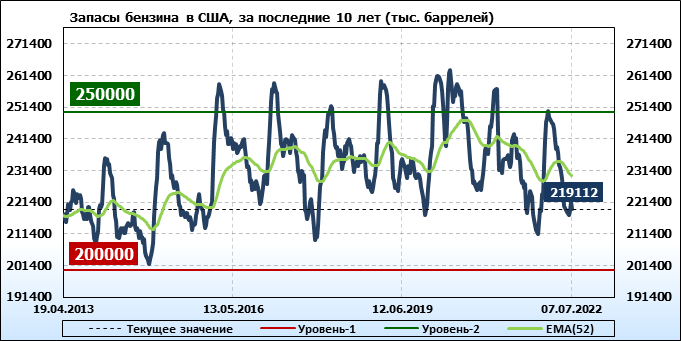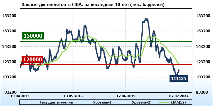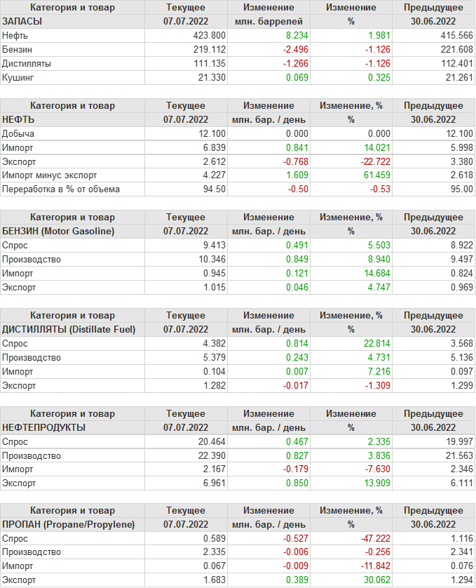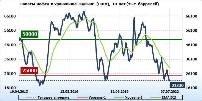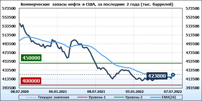 EIA. Коммерческие запасы нефти в США на 7 июля 2022