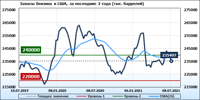 EIA. Коммерческие запасы нефти в США на 8 июля 2021