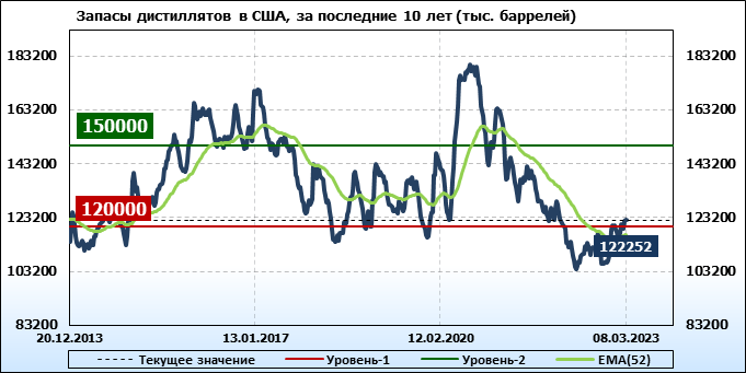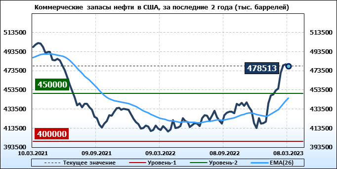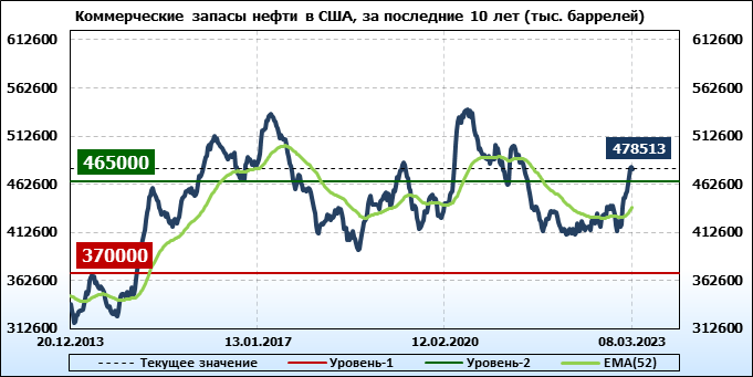 EIA. Коммерческие запасы нефти в США на 8 марта 2023