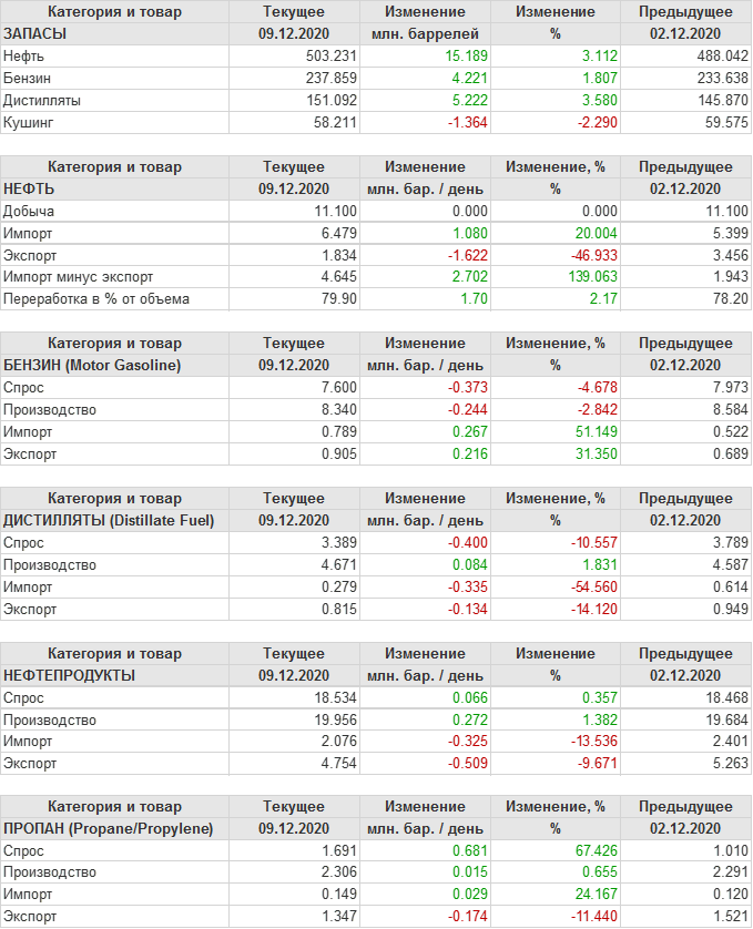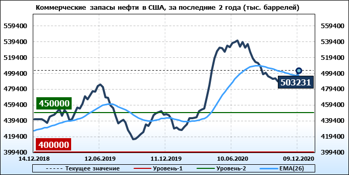 EIA. Коммерческие запасы нефти в США на 9 декабря 2020