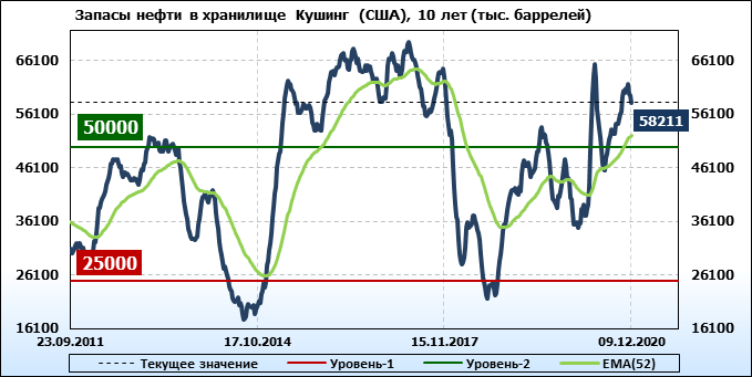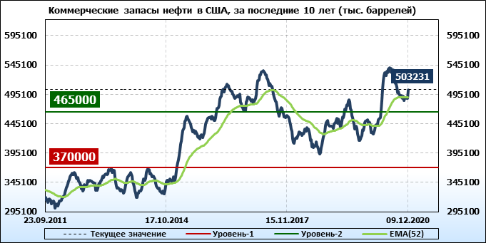 EIA. Коммерческие запасы нефти в США на 9 декабря 2020