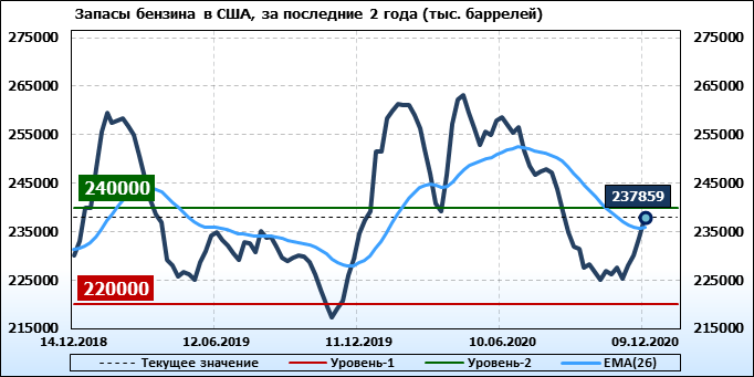 Эксперты, опрошенные агентством Bloomberg, ожидали уменьшения запасов нефти на 1035 тыс. баррелей, роста запасов бензина на 2000 тыс. баррелей и повышения запасов дистиллятов на 900 тыс. баррелей.