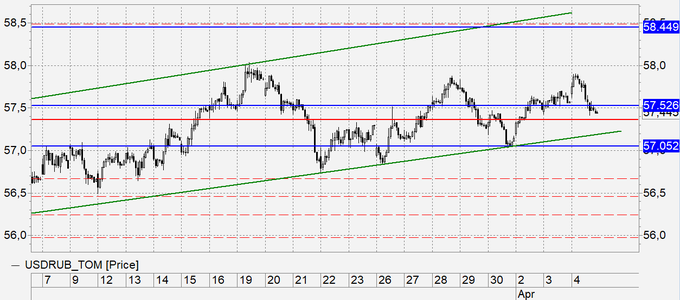 Покупка: при возврате рынка к 57.20. Стоп: 56.92. Цель: 60.00. Кто уже в позиции, держите стоп на 57.40. Цель: 60.00.