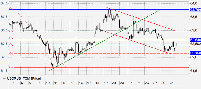 Рубль: быки по доллару отстояли кое-как вчера 62.15. Нефть помогла американской валюте собственным безволием. Пока рассчитываем на рост доллара. В случае ухода цен ниже 62.15 картина может поменяться. Если покупки долларов со стороны ЦБ по указанию Минфина не будут яростными мы сможем подойти к 60.00. И какой смысл покупать по 62.00 когда можно было, и давно, купить по 60.00 и даже по 55.00. То есть уже давно можно было позволить рублю окрепнуть. На этот вопрос мы ответов никогда не услышим. Но это уже другая история.