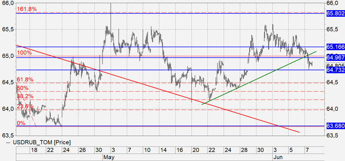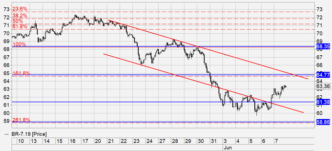 Продажа: при касании 64.77. Стоп: 65.37. Цель: 59.10.