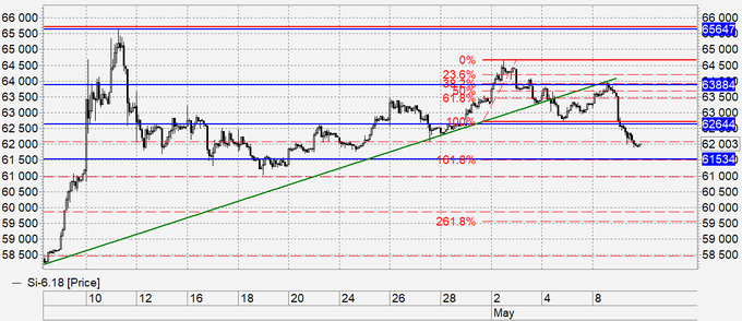 Продажа: нет. Кто в позиции, перенесите стоп на 62.55. Цель: 59.50. Возможна фиксация прибыли на 61.23 и повторный вход в продажу после роста к 62.37.