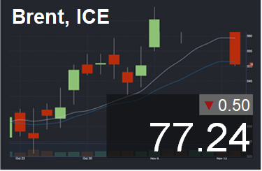 Цена в долларах за баррель. Для пересчета в доллары за тонну нефти марки Brent, необходимо цену умножить на 7,59.