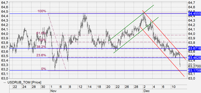 Рубль: ушли ниже поддержки на 63.50 на фоне ослабления доллара и стабильных цен на нефть. Проход ниже 63.00 откроет нам дорогу к 60.00. Однако, завтра заседание ЦБ РФ. У нас есть все шансы увидеть снижение ставки на 0,5%. Реакция на данное решение труднопредсказуема, так как предыдущие снижения ставки не приводили к ослаблению рубля. Поэтому, на сегодня упрощаем себе задачу. Пока цены ниже 64.00 не покупаем.