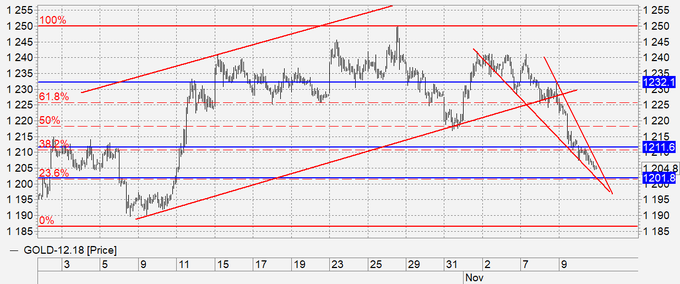 Золото: всем нужны доллары. Золото на фоне спроса на американскую валюту, которую инвесторы быстро переводят в привлекательные ныне облигации ФРС США, остается под давлением. Однако, есть ощущение, что история с выдачей авансов декабрьскому повышению ставок подходит к концу. При касании 1202. Купить.