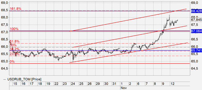 Рубль: нефть не помогла, рубль не порадовал. Фундаментально ситуация крайне странная на самом деле, это повод как минимум для исторического расследования в будущем. А пока нам надо спокойно сидеть в долларах и смотреть чем дело кончится. Нефть не хочет разворачиваться, но она вполне созрела для коррекции, поэтому, пролететь вверх выше 70.00 без коррекционного хода обратно к 68.00 мы не должны.