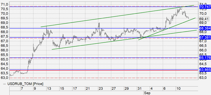 Продажа: возможна при касании 70.70. Стоп: 70.90. Цель: 69.00 (68.00).