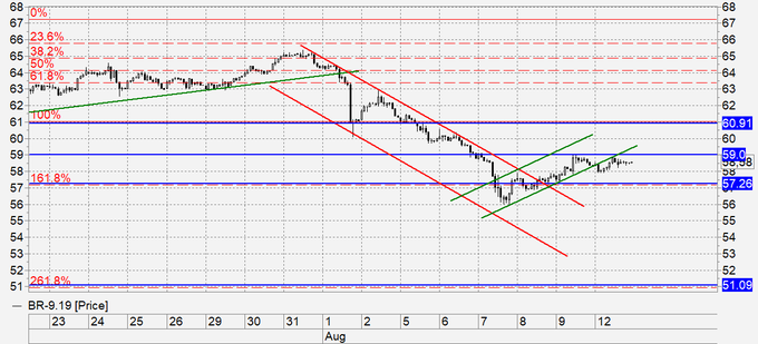 Продажа: при подходе к 60.00. Стоп: 61.30. Цель: 51.10. Или сейчас при появлении сигналов разворота вниз. Стоп: 59.21. Цель: 51.10.