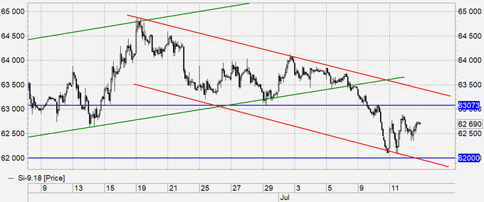 Нефть: вчерашний день прошел так, как ему и положено после сильного падения – видим коррекционные движения. Обвала на рынке не произошло. Мы продолжаем держаться выше 72.00 и более того, сегодня вероятнее всего будем претендовать на рост к 76.20. Выше мы вряд ли сможем подняться, но и этого движения вполне достаточно для внутридневной торговли. Поскольку есть слухи о том, что часть встречи Путин – Трамп будет посвящена нефтедобыче, трейдеры не рискнут перекраивать рынок (убивать его к 60.00) без наличия у них на руках итогов саммита, который будет идти весь понедельник 16-го числа.