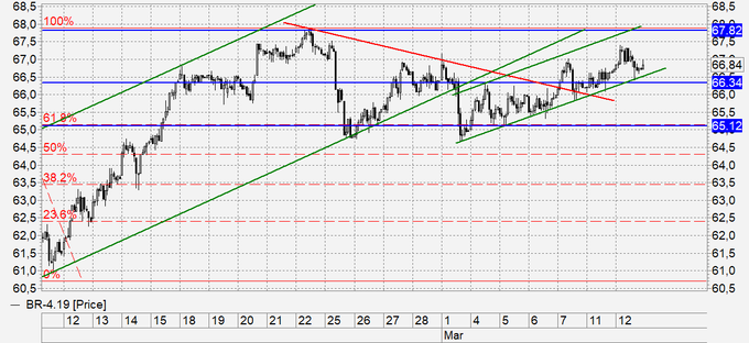 Нефть: отчет API показал снижение запасов нефти в США на 2.6. млн. баррелей. Посмотрим, что сегодня скажет EIA. Если мы увидим подобные цифры быки могут пройти выше 68.00. Если же не принимать в расчет данные по запасам, то падение ниже 66.30 приведет к ходу вниз. Текущие уровни удобны для покупок.