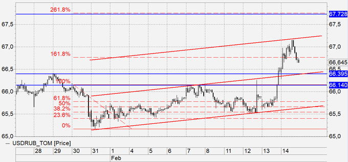 Рубль: перспективы ввода санкций заставили рубль отступить. А так все хорошо начиналось в январе. Нас ждет 67.70. Нельзя исключать, хотя вероятность данного сценария пока мала, что в очередной раз страхи окажутся больше, чем возможный реальный вред. Осознание этого факта может привести к ходу ниже 66.00. Но, гадать не будем, держим лонги по доллару. Тренд наш друг.