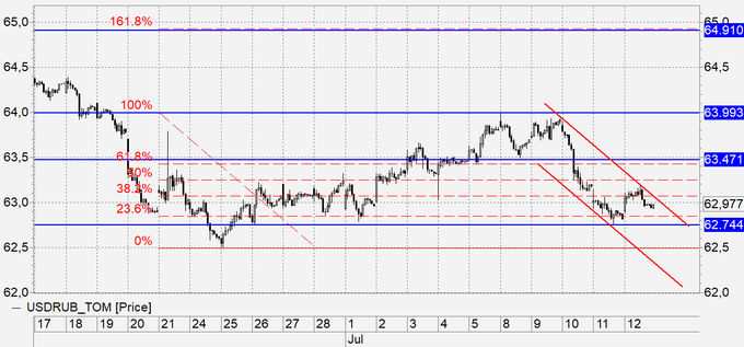 Продажа: при касании 63.38. Стоп: 63.68. Цель: 60.00.
