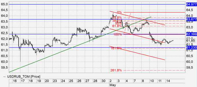 Продажа: при касании 62.38. Стоп: 62.58. Цель: 59.50.