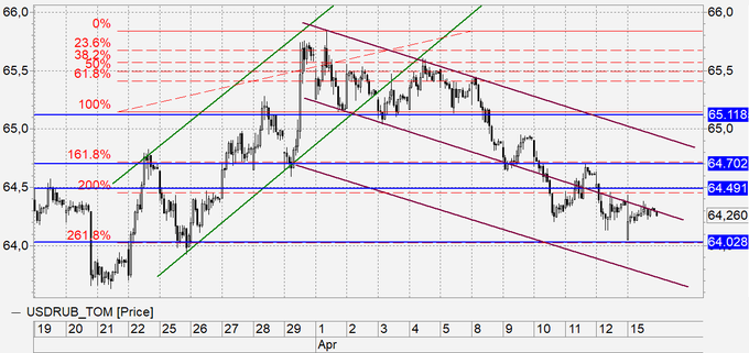 Рубль: на открытии за счет гэпа рынок выполнил цель на 65.05 и затем поспешил закрыть ценовой разрыв. Сегодня мы будем штурмовать 64.00, только при условии роста цен на нефть. В противном случае, нас ждет рост выше 64.50 с несколько неясным дальнейшим развитием событий.