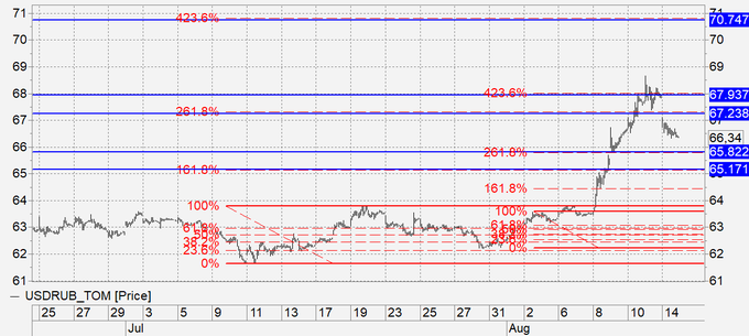 Рубль: пока все идет по писанному. Отошли от 66.00. Сегодня важный момент (у нас все моменты важные, на самом деле) если мы не сможем подняться выше 68.00, то можем увидеть развитие еще одной коррекционной ветки к 65.00. Если же пробой состоится, то дальше 70.00. А там неплохо было бы и ЦБ вмешаться, хотя бы символически, пытаясь на время приостановить падение.