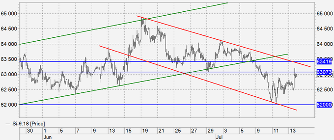 Продажа: при касании 62.80. Стоп: 63.20. Цель: 60.20.