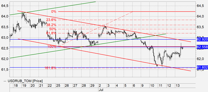 По технике уровень 63.00 является ключевым. Пока мы ниже него, у рубля есть шансы на укрепление.