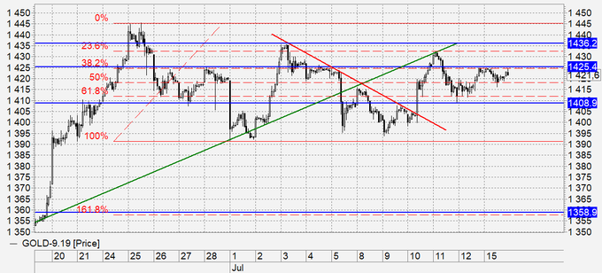 Золото: продолжаем стоять в диапазоне 1408 — 1436. Проявилось сопротивление на 1425. Но разумнее подождать падения ниже 1420 и тогда входить в шорт. Американский фондовый рынок продолжает абсорбировать часть никому ненужных денег, поэтому золото пока остается на голодном пайке. Посмотрим, что поменяется, когда американцы определятся со ставкой.