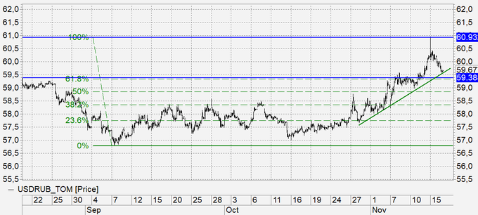Рубль: в случае если нефть реализует задуманное (спуск к 59.00) рубль может расстроиться и отправится на 64.00, пока такой сценарий представляется наиболее вероятным. Текущие уровни интересны для спекулятивных покупок, конечно в паре с разумными стопами.