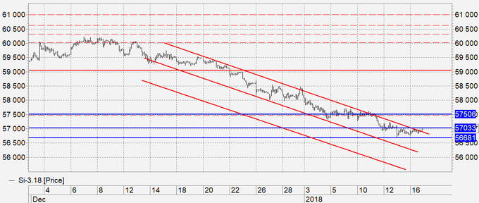 Рубль: поскольку задумалась нефть, задумался и рубль. Да, есть предрасположенность к росту доллара. А вы как думали. Знаете, что объем импорта в Россию достиг в прошлом году 200 млрд. долларов. И закупается все это не за китайские юани. Поэтому, любые намеки на снижение объемов валютной выручки приведут к ослаблению рубля. Нефть на бусы меняем, ренту и налоги собираем, бюджет пополняем. Какая простая и гениальная формула!  И правда, ведь нам нужны бусы, сами мы их сделать не можем.  У нас времени нет. Мы нефть черпаем. Следите за 57050. Если пойдет выше — купите. Не дышите. Подопритесь стоп-ордером. Дышите.