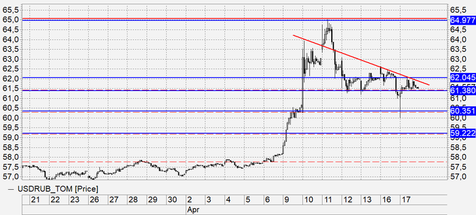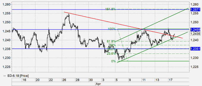Евро: технически евро отрабатывает все возможные коррекционные ходы. Никто от центрального банка Европы не ждет повышения ставок 26 апреля, но всех интересует комментарий о перспективах сворачивания программы количественного смягчения. Что может помешать росту евро кроме комментария ЕЦБ? Разлад между Германией и Францией. Борьба за лидерство внутри Еврозоны будет сдерживать реформы. Противоречия наметились после того, как Меркель холодно отреагировала на инициативы Макрона. Особенно госпоже канцлер не понравилась идея датировать слабые страны еврозоны.