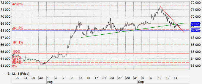 Евро: переходим на декабрьский контракт дата экспирации 20 декабря, биржа ММВБ. Евро остается в игре. Наблюдаем стойкое желание преодолеть 1.1800 и это на фоне ожидания заседания ФРС США 26-го сентября. Но пока этого не произошло, мы не можем исключать в перспективе, что европейская валюта упадает до 1.1000. Скорее всего, рынок в ближайшие дни останется в диапазоне 1.1700 – 1.1800, за этим будет достаточно тоскливо наблюдать, но важность именно сентябрьского заседания ФРС очень велика.