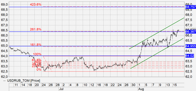 Рубль: рост выше 66.66 приведет к движению на 68.70, а это очень плохо. Как мы отмечали в еженедельном обзоре, проход выше 68.00 пробивает долгосрочную линию сопротивления, что может привести к быстрому росту к 70.00, а возможно и выше. Если нефть не поможет рублю в эти дни, а вероятность такая весьма велика, нам придется наблюдать, а возможно и участвовать в ослаблении национальной валюты.