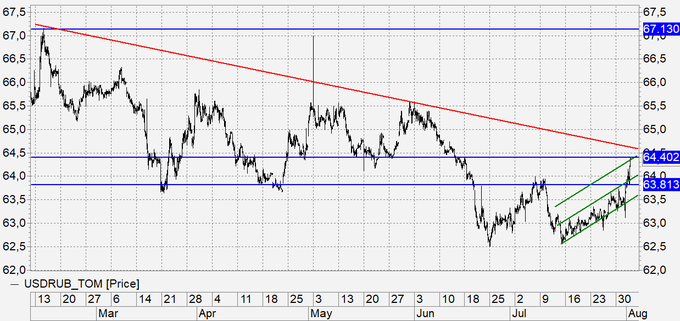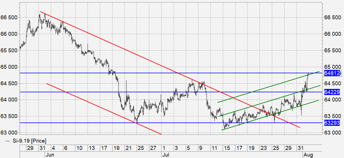 Покупка: при пробое 64.50 подумать. Ситуация неоднозначна.