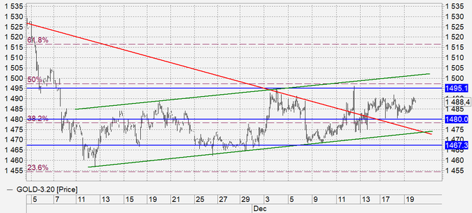 Золото: продолжаем стоять в диапазоне 1470 – 1500. Удерживаем лонги, однако отмечаем, что поводов для волнений во Вселенной нет, поэтому толкать рынок вверх непросто. Что ж будем надеяться, что у политиков хватит ума помолчать и не портить людям новогодние праздники. Тем более, что на рынке акций похоже началось рождественское ралли.