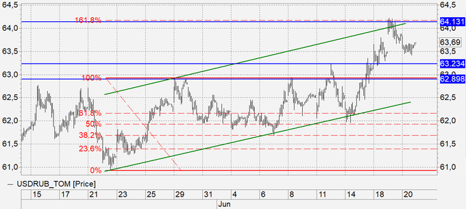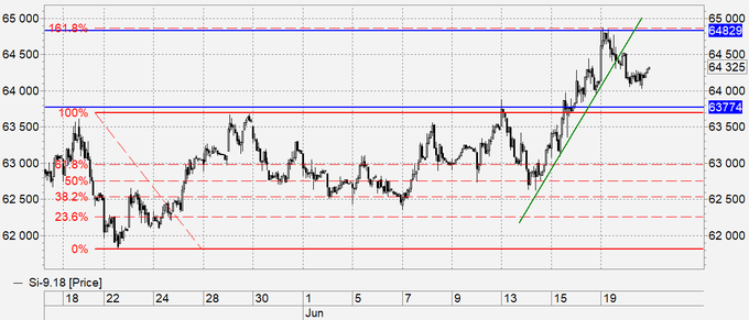 Наиболее вероятно: падение к 63.20 и продолжение роста.