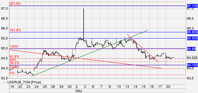 Рубль: упрямство с которым покупатели держат уровень 64.50 вызывает уважение. Тем не менее, только после роста выше 65.00 можно будет говорить о возобновлении роста доллара. Текущая ситуация продолжает оставаться неопределенной.