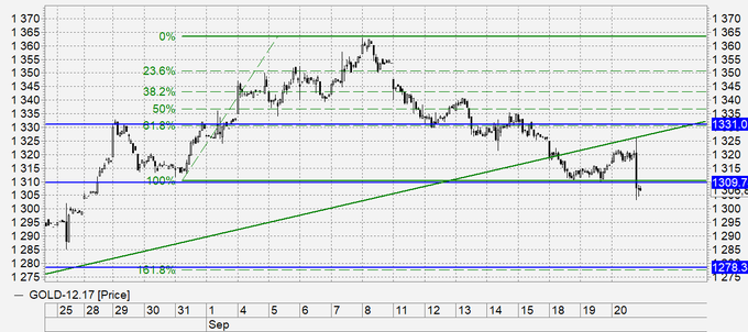 Золото повело себя несколько истерично после объявления решения ФРС и шлепнулось на 15 долларов. Не исключено, что падение будет продолжаться некоторое время. Здесь уровень 1300 наиболее важен. Если ценам сегодня удастся вернуться выше него, то очередного хода вниз может и не быть.
