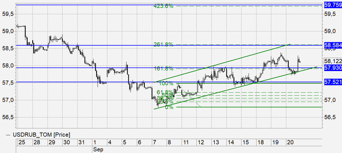 Покупка: нет. Кто в позиции переносит стоп на 57.58. Цель: 58.60.