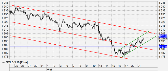 Золото: подошли мы к 1200. Здесь при появлении сигналов на разворот вниз можно продавать. Если рынок уйдет выше 1210, то все попытки продаж нужно прекратить, так как быки перехватят инициативу (будет пробита важная линия сопротивления).